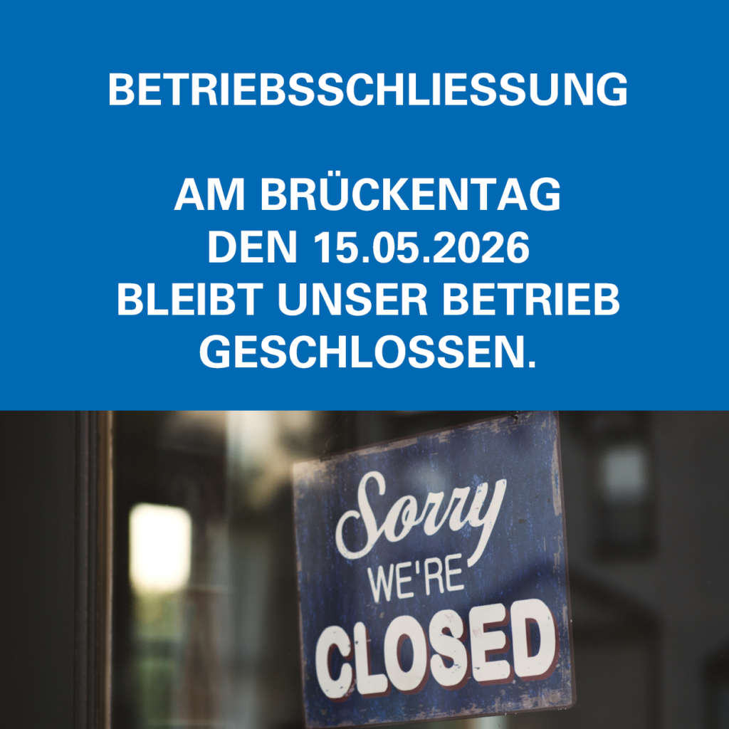 von einschließlich 24.12.2025 bis 06.01.2026 bleiben unsere Betriebe geschlossen.